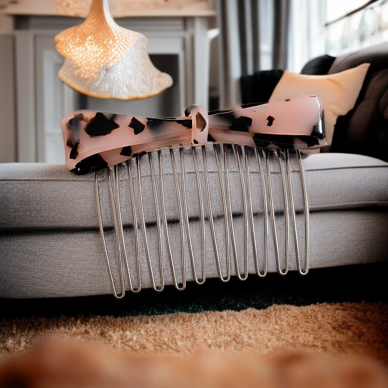 ● Unikalna konstrukcja wysokiego czubka zapewnia efekt pełnej objętości włosów, idealny dla osób pragnących uzyskać modny, puszysty look bez wysiłku. ● Antypoślizgowa powłoka klamry gwarantuje stabilność przez cały dzień, nawet przy intensywnych ruchach, eliminując problem zsuwania się spinki z włosów. ● Boczne, dekoracyjne kokardki dodają uroku i dziewczęcego stylu, doskonale komponując się zarówno z codziennymi, jak i eleganckimi stylizacjami. ● Praktyczna funkcja odwróconego mocowania pozwala na różnorodne sposoby zakładania spinki, podkreślając indywidualny charakter każdej fryzury. ● Wykonana z trwałych materiałów, jest odporna na uszkodzenia i zachowuje swój kształt, zapewniając długotrwałe użytkowanie nawet przy częstym korzystaniu.